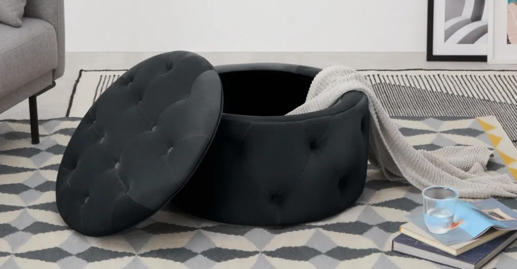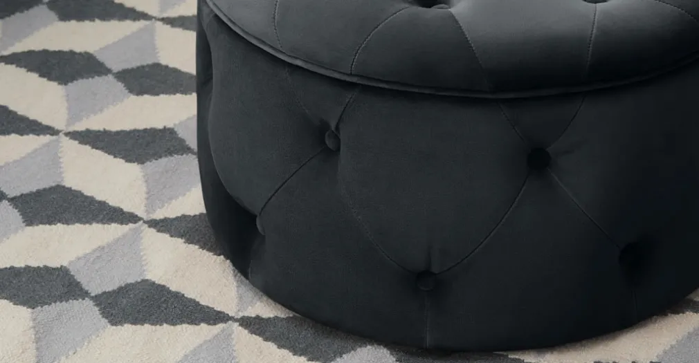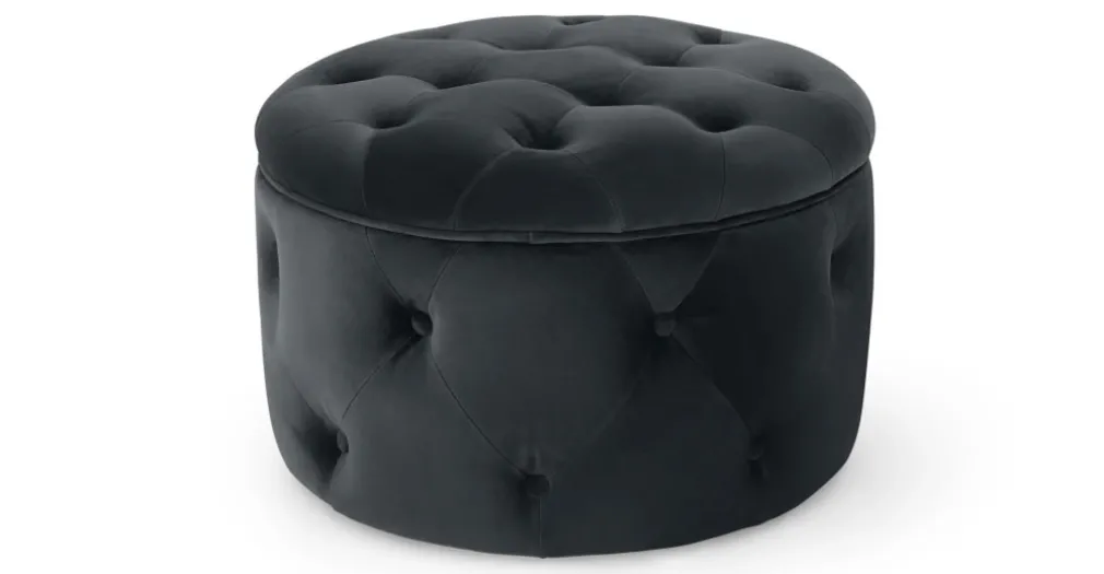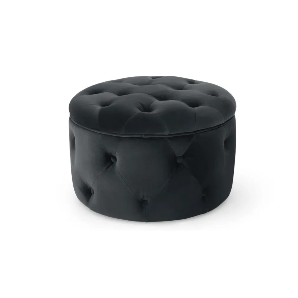 Puf Redondo Pequeño con Almacenaje Hampton – Gris Medianoche