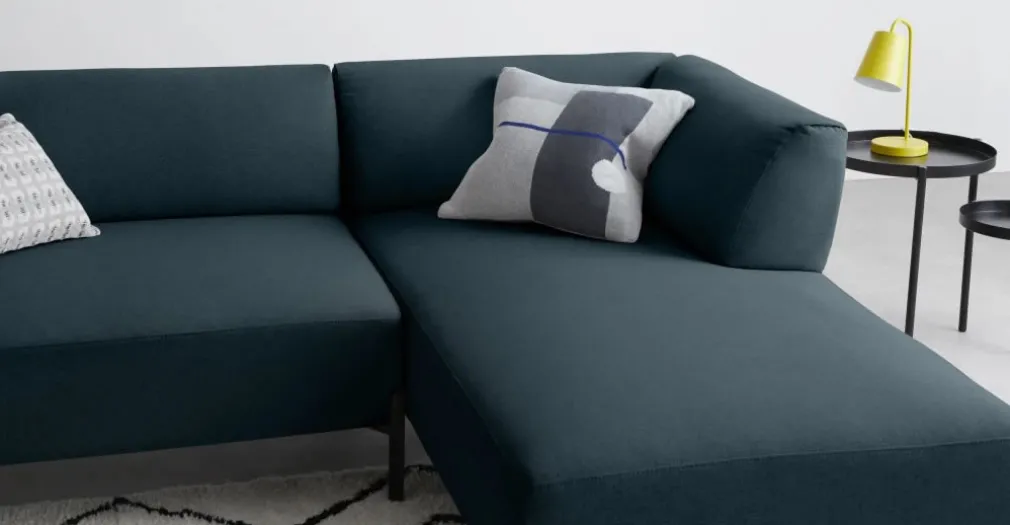 Sofá en L con Chaise Longue a la Derecha Kiva – Azul Egeo