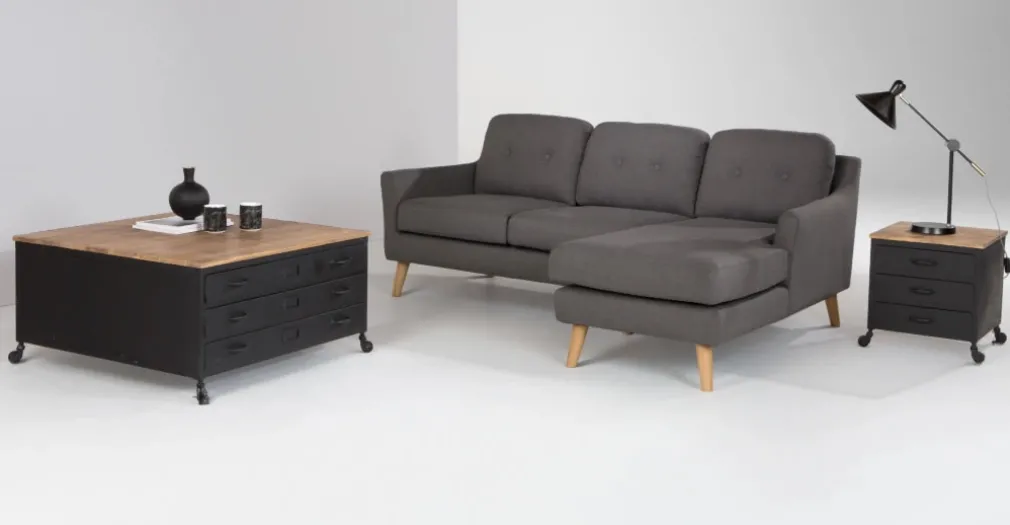 Sofá en L con Chaise Longue a la Derecha Rufus – Gris Rinoceronte