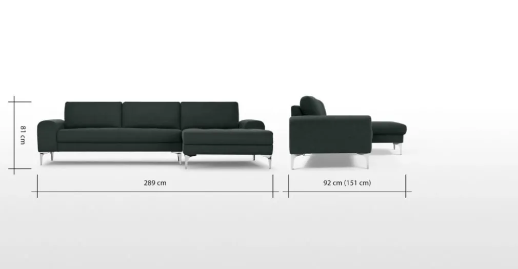 Medidas de Sofá: Alto: 81 cm | Ancho: 289 cm | Profundo: 92/151 cm.