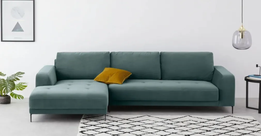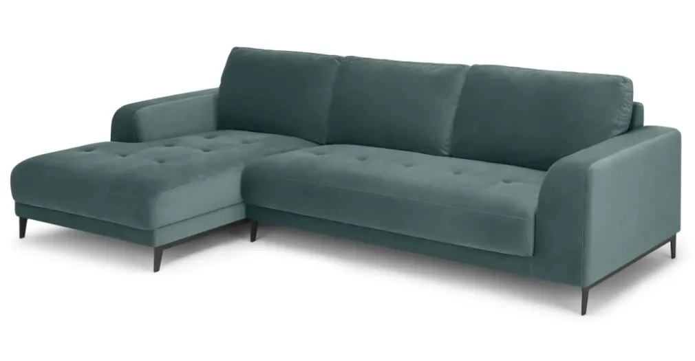 Sofá Esquinero con Chaise Longue a la Izquierda Luciano – Terciopelo Verde