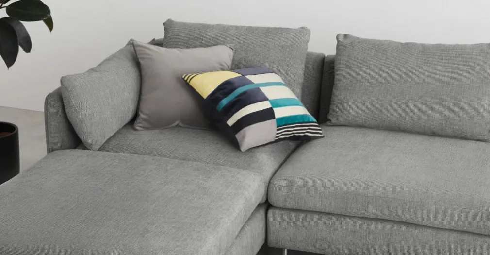 Sofá en L con Chaise Longue a la Izquierda 3 Cuerpos Vento – Gris a Rayas
