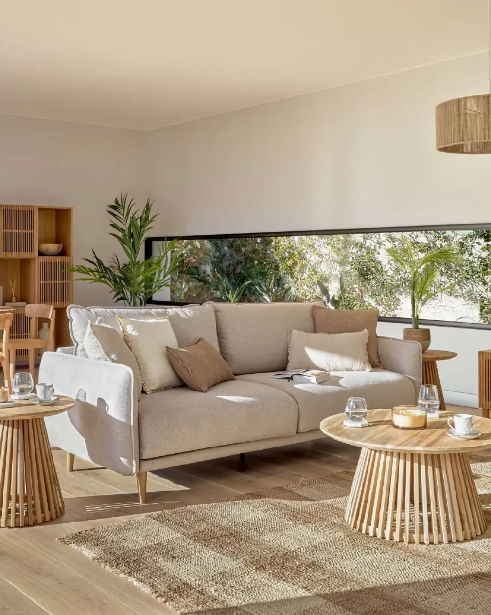 El Sofá Carlota, con un elegante revestimiento de tela Beige, combina estilo y confort en un solo mueble. Su tejido estructurado no solo aporta un toque nórdico y moderno, sino que también garantiza una durabilidad excepcional. Además, su relleno proporciona un extra de comodidad, convirtiéndolo en la elección perfecta para cualquier espacio.