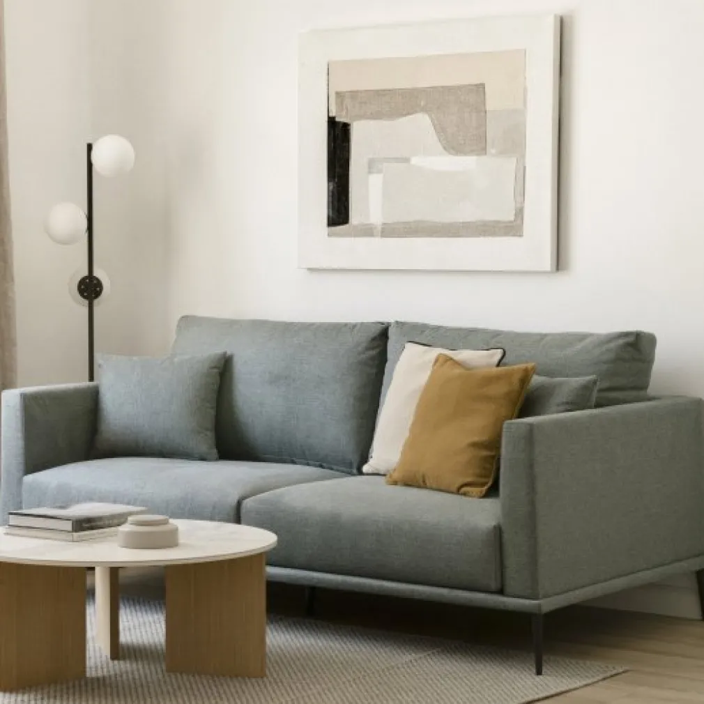 El Sofá Praia elegantemente situado frente a una ventana, aporta un toque de estilo contemporáneo a cualquier espacio. Su diseño moderno y atractivo lo convierte en la pieza central perfecta para su sala de estar. Con una combinación de comodidad y estética, estamos seguros de que te encantará.