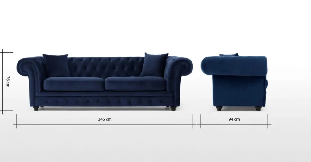 Sofá de 3 cuerpos Chesterfield Branagh – Azul Eléctrico