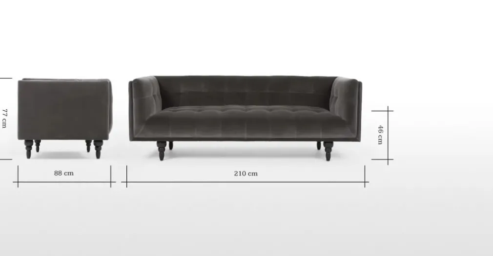 Medidas de Sofá: Alto: 77 cm | Ancho: 210 cm | Profundo: 88 cm