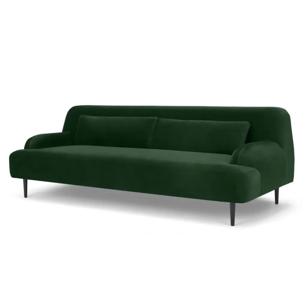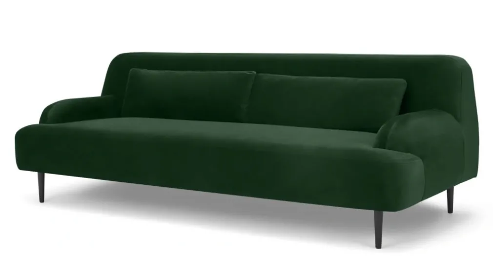 El Sofá Giselle – Verde Pino es refinado con curvas pronunciadas de estilo nórdico que inspira, patas delgadas al estilo escandinavo y recubierto de un suave terciopelo.