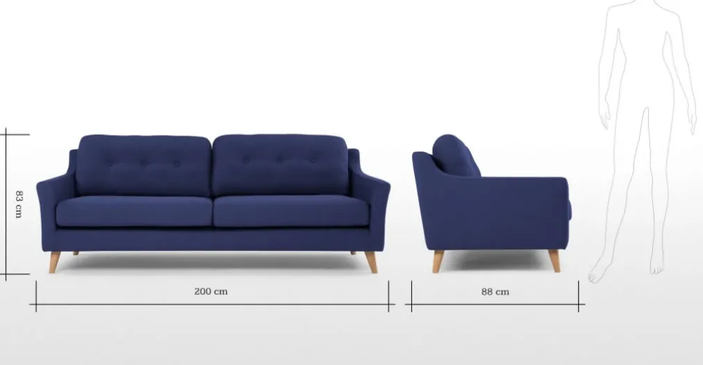 Sofá de 3 Cuerpos Rufus – Azul Cobalto Oscuro