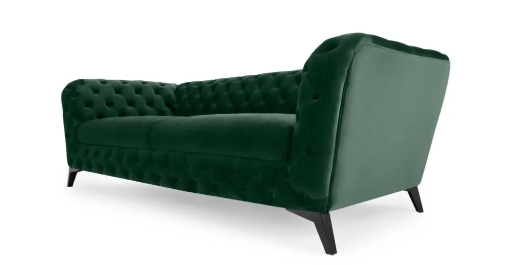 Su estructura tapizada en terciopelo verde suave y firme , mientras que sus cojines son tan cómodos y su diseño con botones en el respaldo, reposabrazos para cautivar desde el lugar en que lo ubiques, dando a tu ambiente frescura y armoría.